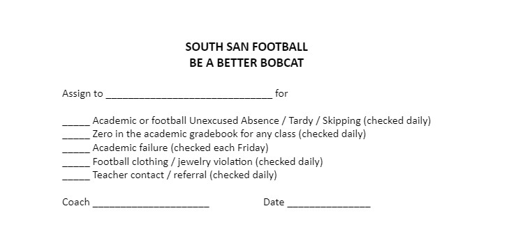 Use this form to document each and every infraction on the Standard of Excellence you want for your program.
